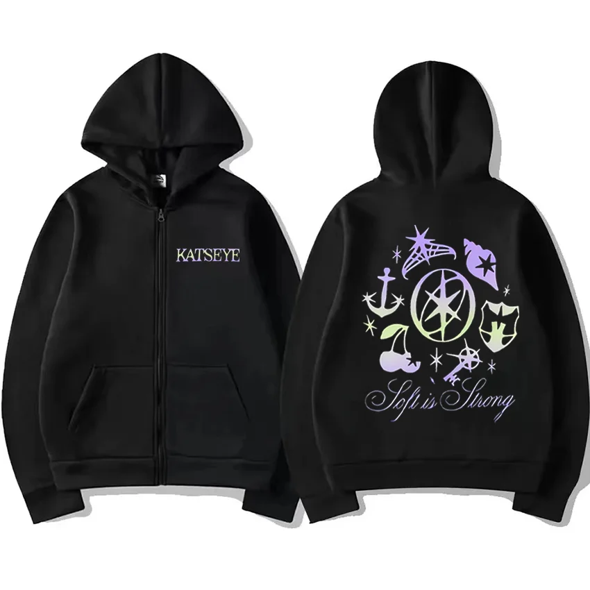 Katseye Graphics tracksuit vintage Hoodie Men Women 2025 tops Fleece fashion clothes Hip Hop Coat Zip Up Jacket Loose streetwear